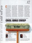 Il mensile Inside art del 3 dicembre ha dedicato il numero alla situazione della crisi finanziaria e alle risposta dell’arte e del mondo culturale. I soldi sono caduti in disgrazia ed io mi sono inventata i Soldi d’artista che potrebbero diventare come le “mele” per la ricerca con la differenza che sarebbe il primo intervento per aiutare i singoli artisti ad avere un piccolo aiuto per la loro sopravvivenza. A Natale aiuta anche l’arte e la cultura. Alla mostra Soldi D’artista ci sono soldi per tutte le tasche, a partire da 2 euro e fare un regalo di solidarietà e protesta per restituire ai soldi il valore originario di strumento al servizio dell’uomo. Perchè siamo noi a dare valore, i soldi siamo noi.. Alla carta dei soldi d’artista hanno aderito ad oggi già 47 artisti.