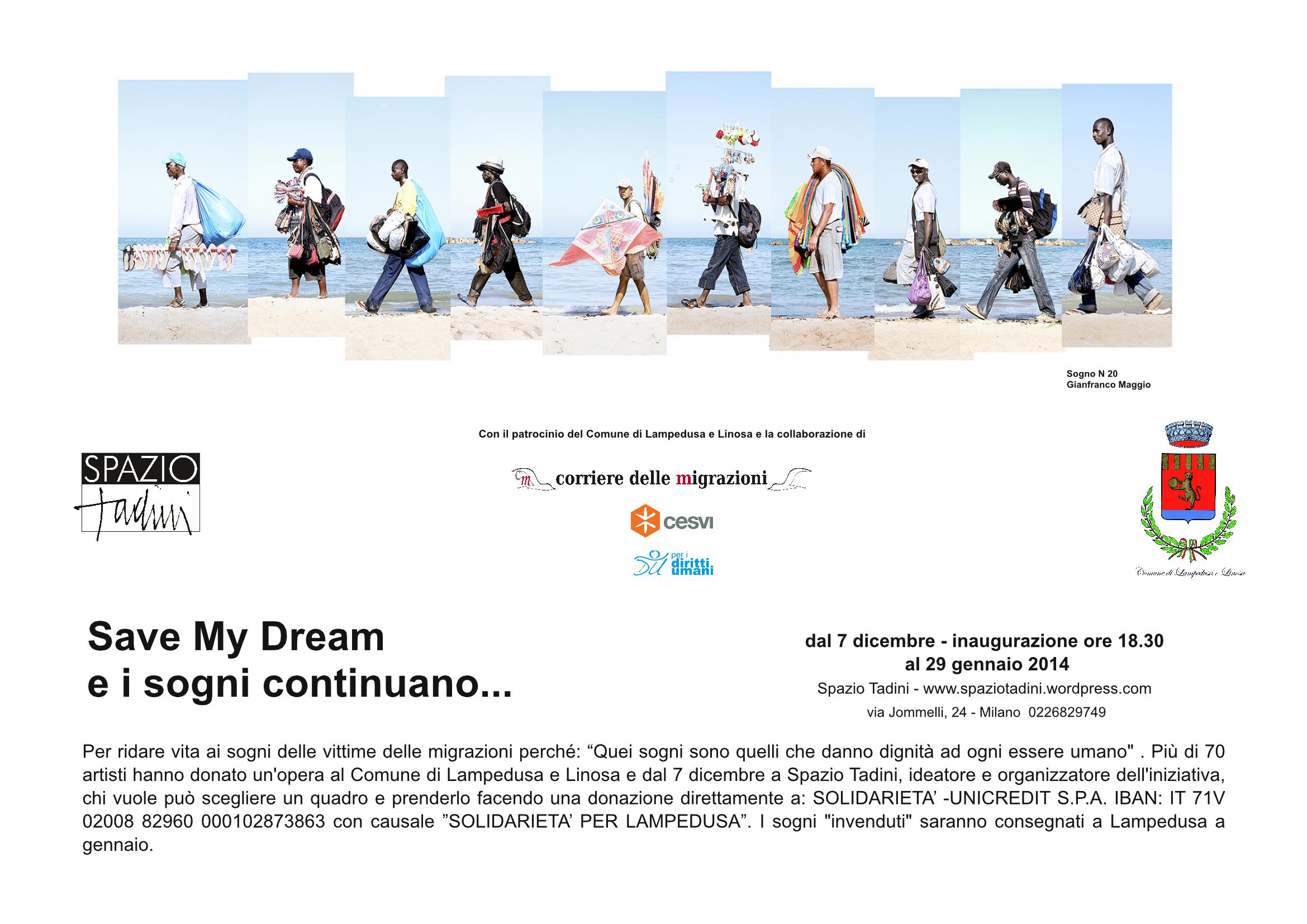 In queste ore, in cui Lampedusa è ancora al centro delle cronache, questa volta non per nuovi sbarchi e nuovi morti, ma per le condizioni in cui vivono e vengono trattate le persone presso il centro di accoglienza dopo il servizio mandato in onda sul Tg2, riteniamo doveroso diffondere la lettera pervenutaci dall’assessore alla cultura di Lampedusa per la mostra Save My Dream organizzata a Spazio Tadini a cui hanno aderito più di 110 artisti.