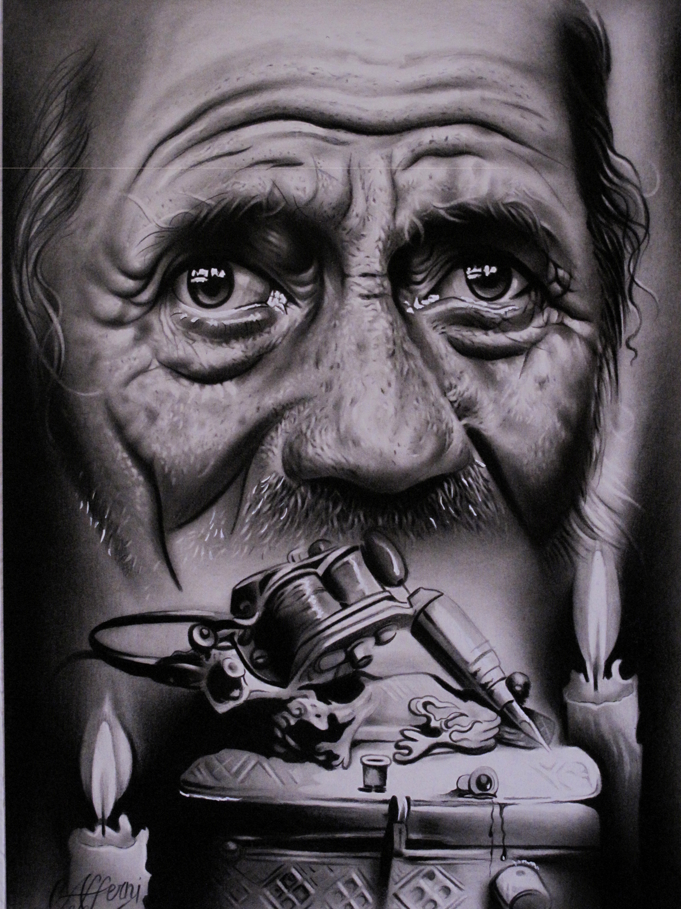 Nel tatuaggio l’uomo ricerca l’uomo attraverso il corpo come mezzo ed espressione, mentre l’arte si conferma il linguaggio più vicino e spontaneo ai bisogni primari dell’uomo a dispetto delle mode, dei mercati e al di là di qualunque valutazione critica”.