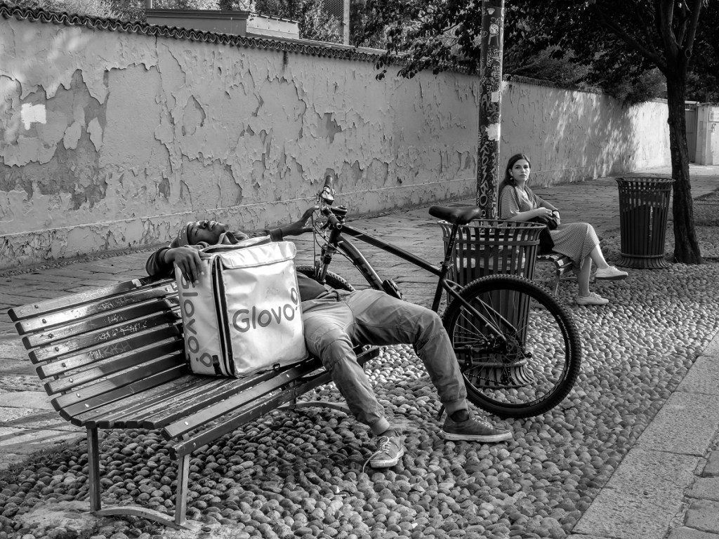 Le fotografie affollano i social, il web, i giornali, le televisioni e si moltiplicano esponenzialmente, ma a differenza di chi scatta per affermare il proprio essere e vivere il mondo, un fotografo deve porsi il problema di scegliere in che lingua parlare. L’immagine scelta, postata o stampata deve essere una cifra linguistica, una decisione narrativa. Alberto Scibona ha scelto di raccontare la commedia umana, soprattutto quella della metropoli, dove l’umanità ha scelto di concentrarsi, di costruire, di lavorare, di progettare, di gestire di più e ancora di più. Milano è certamente l’emblema italiano di questo più, del fare di più. Così le sue fotografie hanno conquistato anche il cuore di uno dei gruppi fotografici social tra i più attivi del capoluogo PhotoMilano, e migliaia di persone apprezzano, tutti i giorni, la sua commedia metropolitana raccontata per immagini. I suoi scatti viaggiano insieme ai suoi titoli esilaranti e scopri che ti appartengono, che lui ha colto il fotogramma del film in cui anche tu sei protagonista, ma distratto sei passato oltre senza accorgerti.