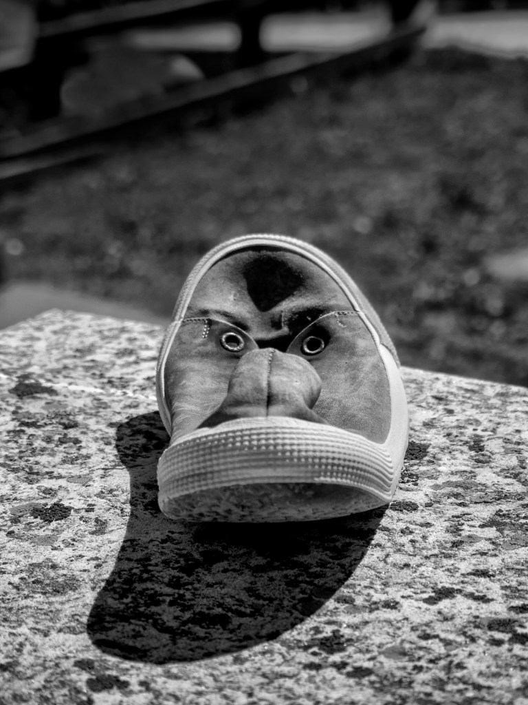 Nelle sue fotografie trovi una scarpa che ti guarda con il volto di chi vuole mostrarti come ci si sente nel “Svegliarsi col piede sbagliato”,