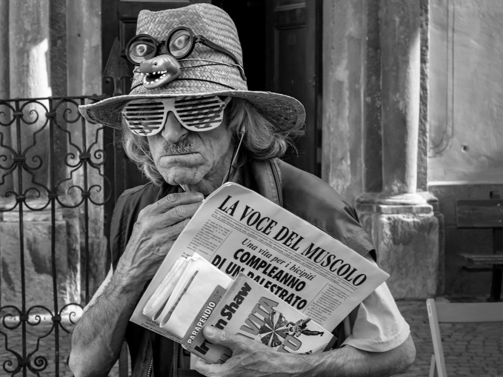 Nessuna parola, né narrazione o commedia avrebbe espresso così bene le numerose occasioni umoristiche del caso e del caos metropolitano come le fotografie di Alberto Scibona. Puoi camminare da solo per strada, entrare da solo in una chiesa, visitare da solo un museo e, nonostante questo, scoprire che la città ti sorride sempre e ti parla. Puoi non sentirti mai solo, basta saperla guardare. Là dove l’umanità si concentra, lavora, corre e ti ignora succedono strane convergenze della casualità. Le persone, i loro oggetti, le loro espressioni, il loro vissuto e le loro costruzioni aprono un dialogo sorprendente tra loro. Queste connessioni generano sinapsi interpretative di scene di città che per il fotografo Alberto Scibona sono rapide quanto un click. Le situazioni davanti al suo obiettivo assumono il senso della contraddizione, dell’assurdo e del riso fino a quell’humor che esprime il bisogno comune di saper sorridere del nulla apparente che si genera dal caos.
