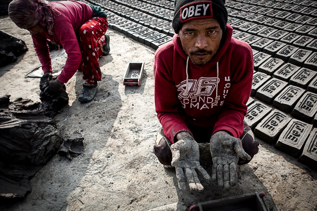 Che cosa lega l’uomo alla polvere? La terra. In Nepal, durante la stagione secca che va da ottobre a giugno, quando il sole cuoce anche le pietre, decine e decine di famiglie arrivano dai villaggi verso i maggiori agglomerati urbani tra Kathmandu e Panau per produrre mattoni dalla terra. Non si tratta di fabbriche, ma di veri e propri accampamenti in cui intere famiglie, senza distinzione di sesso e di età, lavorano dalla mattina alla sera per fare mattoni per l’edilizia che ha subito un incremento di affari dopo il grave terremoto del 2015 di magnitudo 7,9 che uccise 8 mila persone e rase al suolo il Paese. Un lavoro fino allo sfinimento, anche fino alla morte… fino alla polvere.