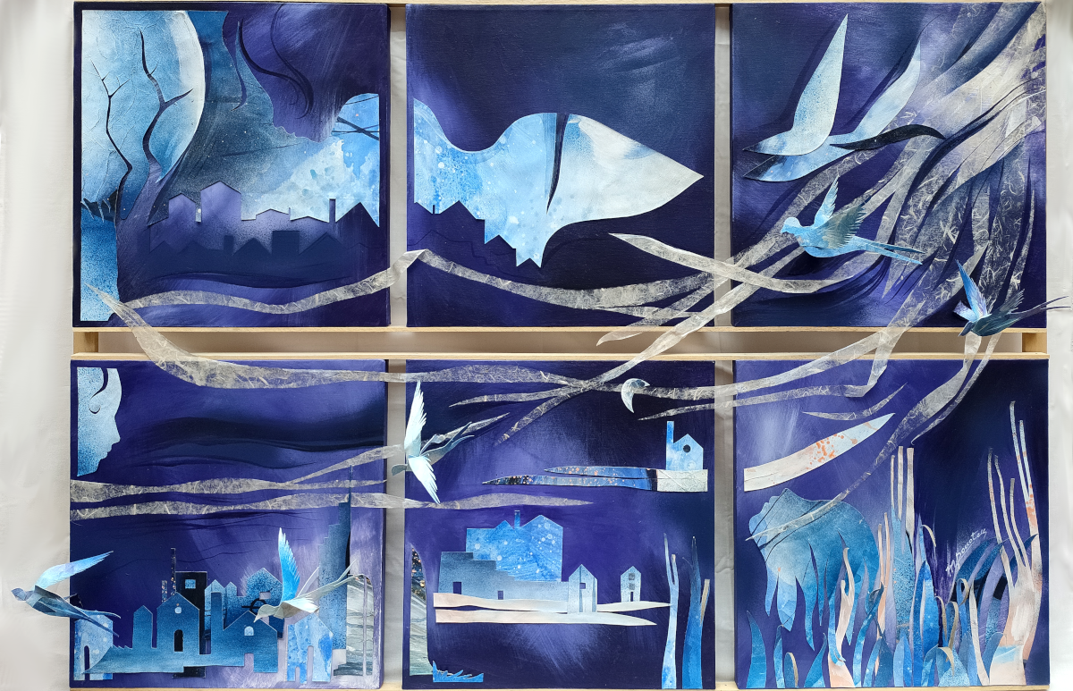 L’artista forse ci suggerisse una strada possibile. I suoi lavori spesso sono il risultato di un insieme: ogni piccola tela, è concatenata all’altra, è dipendente dall’altra tanto da presentarsi come una composizione. E’ come se ci dicesse che non importa quanti siano i singoli individui che guardano il mondo, quante siano le finestre che si aprono là “fuori”, perché è l’insieme che conta, o meglio, il tenere insieme questi frammenti, queste distanze, queste differenze.