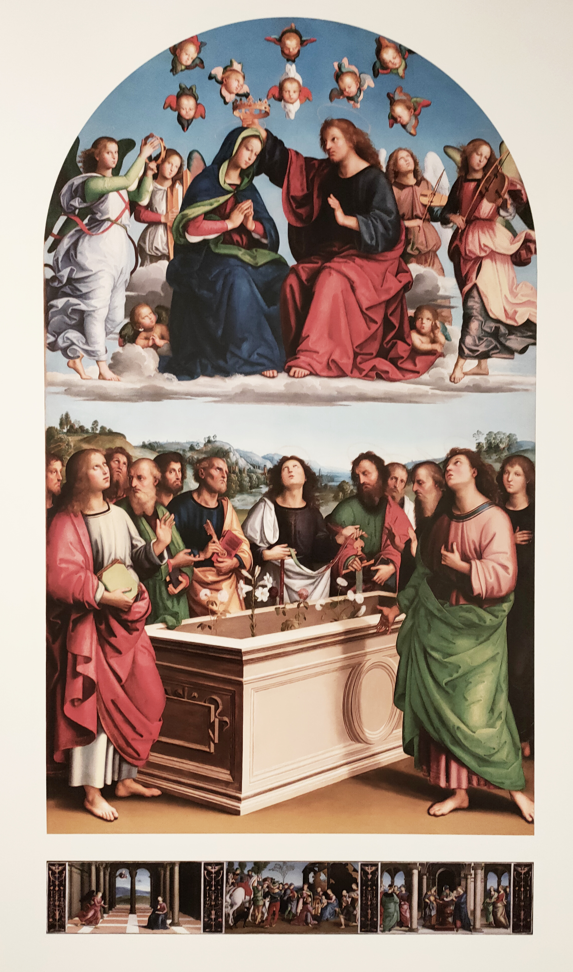 “La Pala Oddi, una delle tre importanti commissioni che il pittore urbinate riceve da Perugia all’inizio del Cinquecento, è stata realizzata per l’altare della famiglia Oddi nella chiesa di San Francesco al Prato a Perugia ed è composta da un dipinto centrale raffigurante l’Incoronazione della Vergine e dalla predella dedicata a tre episodi mariani.