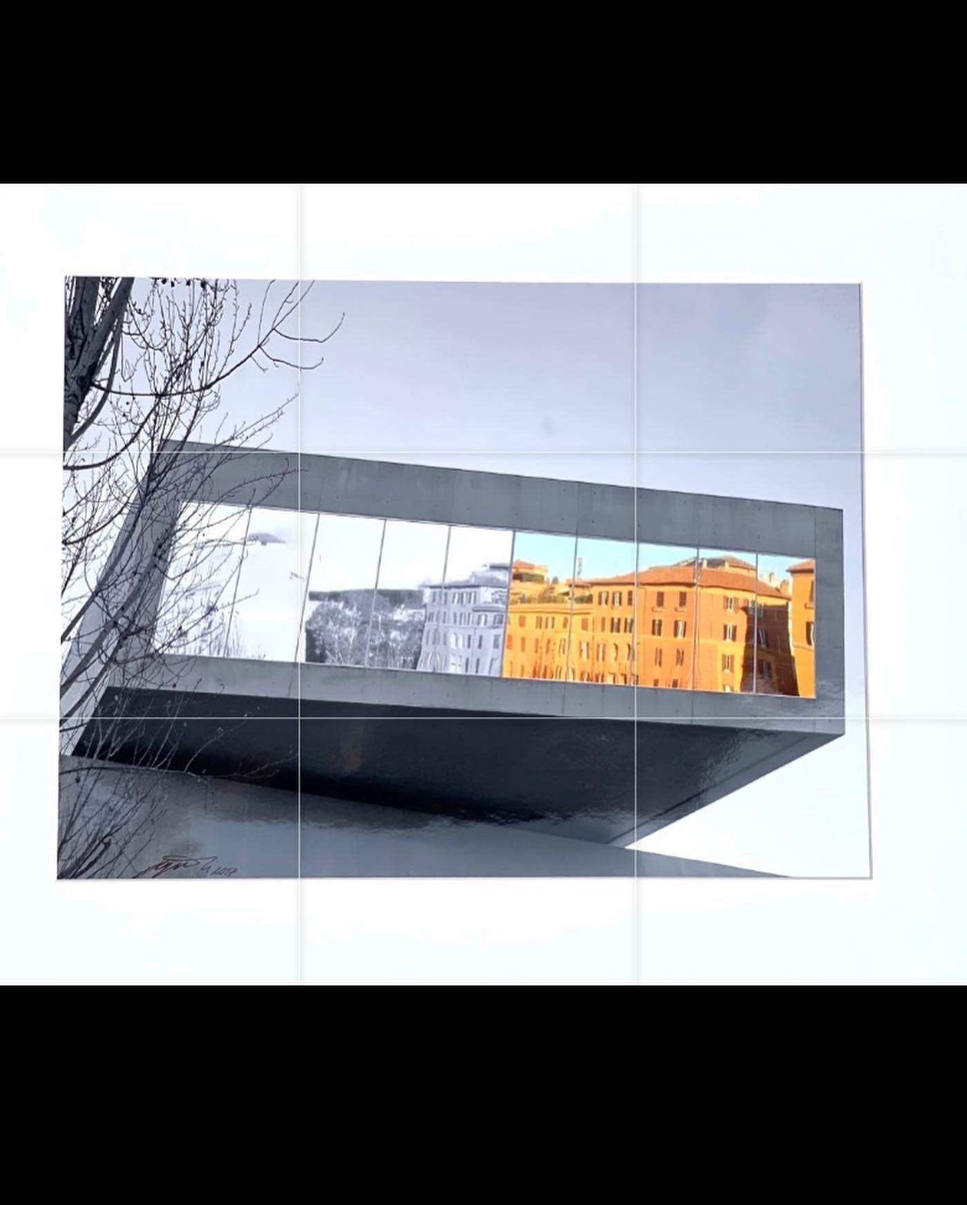 Le ricomposizioni a collage mettono a confronto non solo due sguardi possibili, due emozioni potenziali – bianco e nero – ma esprimono tutta la capacità dell’Uomo di tenere insieme questo dualismo visivo come convivere con il buono e il cattivo, il bello e il brutto, il tragico e il comico. Il risultato si presenta come una fotografia caratterizzata da frammentazioni dinamiche che ricordano certi lavori di ricerca fotografica e pittorica da primo Novecento con chiari rimandi al periodo Futurista. Tuttavia, in queste fotografie Isabella, non enfatizza il movimento esaltando la possibilità di rendere manifesto il punto di partenza e d’arrivo di un percorso, quanto la possibilità che tutto ciò che si muove possa subire un’interruzione della sua traiettoria o tragitto e della necessità e capacità dell’Uomo di ricomporre, in modo nuovo, una storia. La fotografa compie un lavoro di sezione e ricomposizione della frammentazione del mondo alla ricerca di un nuovo senso, di un nuovo equilibrio e di una nuova armonica bellezza nonostante tutto. Un lavoro fotografico che ricorda il Kintsugi ovvero la tecnica orientale di riempire d’oro le crepe degli oggetti rotti e ricomporli a testimonianza del valore importante della composizione delle ferite. Nella fotografia di Isabella, però, non è il caso che cambia il mondo, ma è lei che taglia il quadro visivo scegliendo di presentarlo a piccole sezioni e di ricomporlo, a testimonianza non solo del fluire e divenire del mondo, ma del potere razionale di riorganizzarlo. Il suo è uno sguardo che cerca nel Tutto il frammento per renderlo bello e possibile come per prepararsi alla catastrofe e prefigurarsi che tutto comunque potrà essere ricomponibile e riparatorio. Una sorta di edificazione dello sguardo che tradisce la sua preparazione professionale di architetto.
