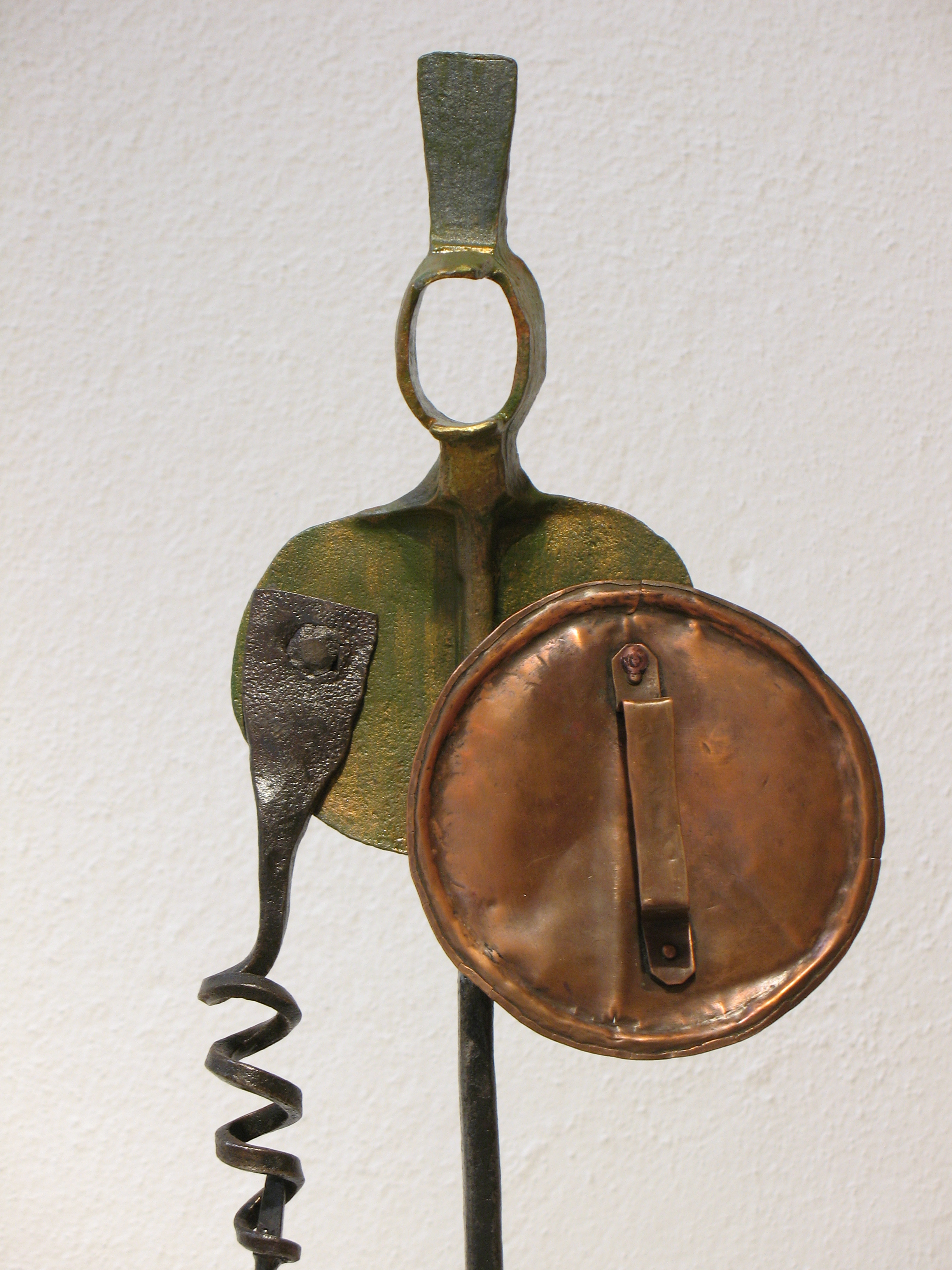 Ma cosa c’è dentro quel racconto? C’è spesso la dipendenza dell’uomo da quelle cose, un rapporto inverso rispetto a quello a cui siamo abituati oggi. Ma c’è anche la vita dell’uomo stesso raccontata dalle cose, come l’attrezzo che si trasforma in un cane e sta accanto al suo padrone che esiste in quanto egli stesso è il risultato di un insieme di cose. Cose concrete. Una concretezza che Mera esprime anche dalla scelta dei materiali che compongono le sue sculture costituite prevalentemente da metalli e legno.